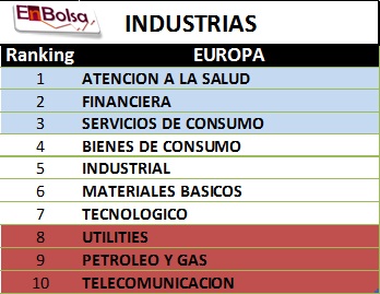 Así pues, a continuación se muestra una tabla con la evolución de la última semana (dicha tabla se actualiza semanalmente desde EnBolsa.net) de las principales industrias en el mercado europeo.