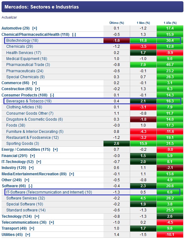 Puesto que no es lo mismo operar bajo un índice alcista o bajista y, todavía más importante, sobre una acción cuyo sector o industria no presenta una estructura a nivel técnico que concuerde con nuestra operativa, se presume vital para el éxito de nuestra operativa conocer qué sectores o industrias se están comportando mejor y/o peor para operar en consecuencia, aumentando así, nuestras probabilidades de éxito.