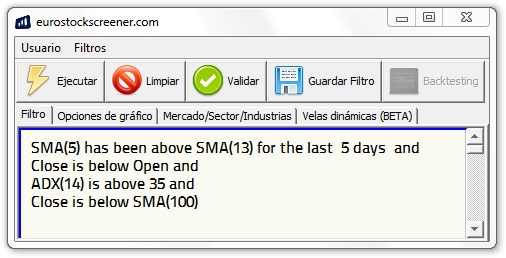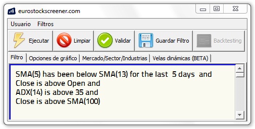 Una vez definido e ilustrado nuestro sistema de especulación, es momento de porgramarlo en nuestra plataforma EuroStockScreener que nos permitirá filtrar el mercado bursátil europeo en busca de señales inminentes de compra/venta de activos.