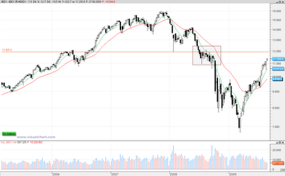 Segun mi recuento, al haber traspasado el nivel de 9760 habriamos superado el ultimo maximo dejado por la ultima secundaria al alza (maximos relativos del dia 6 de enero de 2009)