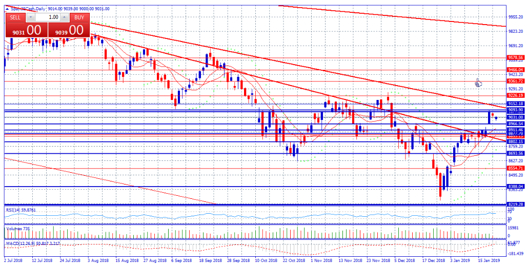 La rotura al alza de los niveles de 9152 nos puede representar una entrada largo/compra, con objetivos 9225. La rotura a la baja de los niveles de 8966 nos puede representar una opción de entrada cortos/vendedor a niveles de 8911.