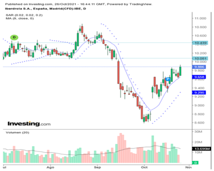 En España el Santander ha publicado sus resultados obteniendo unos beneficios Netos de 5849 millones € frente a las pérdidas de 9048 € millones del mismo periodo del año anterior. A falta de analizar el resto de partidas veremos cómo interpreta el mercado sus resultados y si ayuda a que nuestro indicador se acerque a los niveles de 9050 puntos. Estamos pendiente de conocer los resultados de Iberdrola, la acción puede romper durante esta semana los niveles de 10 € y dirigirse hacia los 10,2 € /10,4 €.