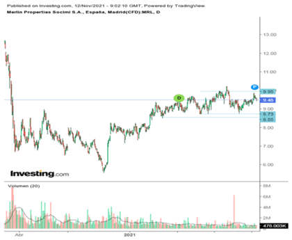 Técnicamente el valor está inmerso desde marzo de este año en un proceso de lateralización consolidando la recuperación con resistencia en los niveles de 9.8/10.2 € y 8.7/8.5 €. En este momento se encuentra cotizando en la cuota de 9.44 €, niveles que en el periodo comentado a servido de pivot, por tanto, en tierra neutra. Mi visión para el sector y el valor es positiva de cara al cierre del año y con una mejora considerable en su cotización de cara al año próximo. Mi estrategia en el valor sería, si se está dentro mantener posiciones, si se quiere entrar esperar la rotura al alza de los niveles de 10 € para entrar y aumentar posiciones.
