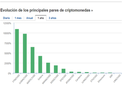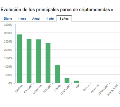 Os detallo evolución de rentabilidad de diversas criptomonedas en el período tanto de 3 como de 1 año.