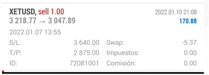 Detalle resultado de la estrategia de criptomonedas de la semana del 7 al 10 Enero 2022
