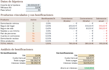 ¿Cuánto ahorro en intereses gracias a la bonificación y cuánto me cuesta mantener esos productos frente a contratarlos por mi cuenta?