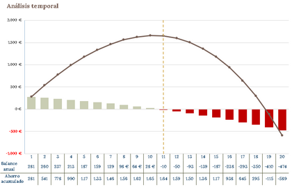 Aquí aparece el matiz más importante de todos. En este ejemplo, las bonificaciones sí tienen sentido durante los primeros años, concretamente durante los primeros 10 años. A partir de ese punto, mantenerlas empieza a destruir valor y resulta más eficiente cancelar los productos vinculados y quedarse únicamente con la hipoteca.
