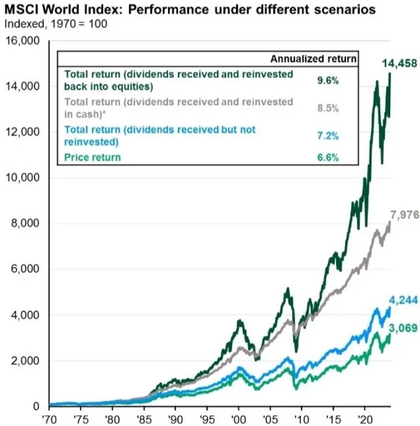 🔍 El MSCI World desde 1970 lo confirma con números con la evolución de 100$ invertidos.