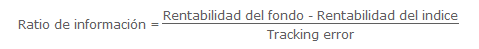 El ratio se obtiene restando del rendimiento del fondo el rendimiento del índice de referencia. El resultado de esta resta se divide después por el "tracking error" del fondo (índice de volatilidad, que nos indica cuánto se ha desviado la rentabilidad de un fondo con respecto a la de su índice de referencia.