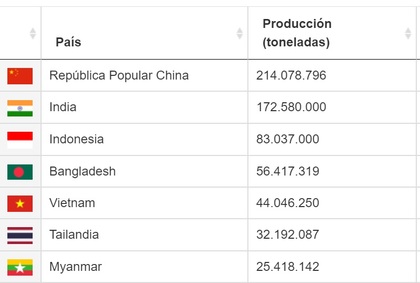 A nivel global, la producción anual de arroz supera hoy los 500 millones de toneladas de arroz elaborado (y más de 750 millones de toneladas si contamos el arroz con cáscara). China y la India se mantienen, con mucha diferencia, como los dos principales productores y consumidores del mundo, pero no solo para garantizar el suministro interno de alimentos, sino también para exportar arroz a mercados de todo el planeta.