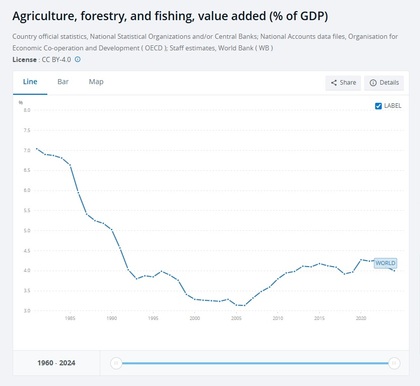 Evolución del PIB de la agricultura en la economía mundial | Fuente: World Bank Group