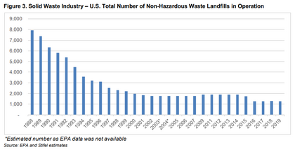 Disminución del número de vertederos históricamente (EE.UU.):