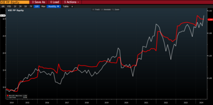 Veoliaes una de las empresas de gestión de residuos y tratamiento de agua más grande del mundo y líder en Francia. Interesante diversificación de negocios difícil de encontrar en otros competidores (agua, residuos y energía).