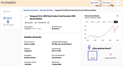 Revisa la rentabilidad en tu panel MyInvestor muestra la evolución diaria del fondo y puedes ver en qué empresas del S&P 500 estás invertido (Apple, Microsoft, Amazon, etc.).