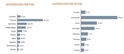La cartera se reparte entre los principales países de Europa Occidental, con una presencia dominante de Francia y Alemania, los dos polos industriales y tecnológicos más relevantes del continente.