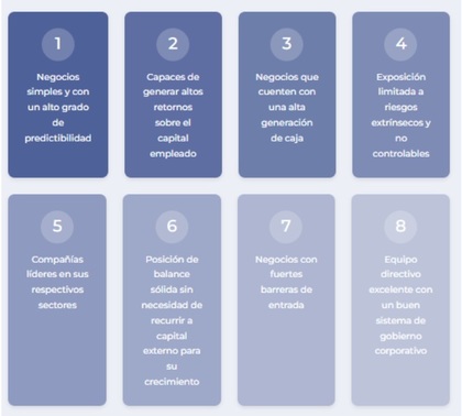 Inversión en calidad (quality investing): su foco principal no es encontrar compañías infravaloradas (estilo value) sino identificar negocios extraordinarios, con barreras de entrada, ventajas competitivas sostenibles y balances sólidos, para invertir en ellos a valoraciones razonables.