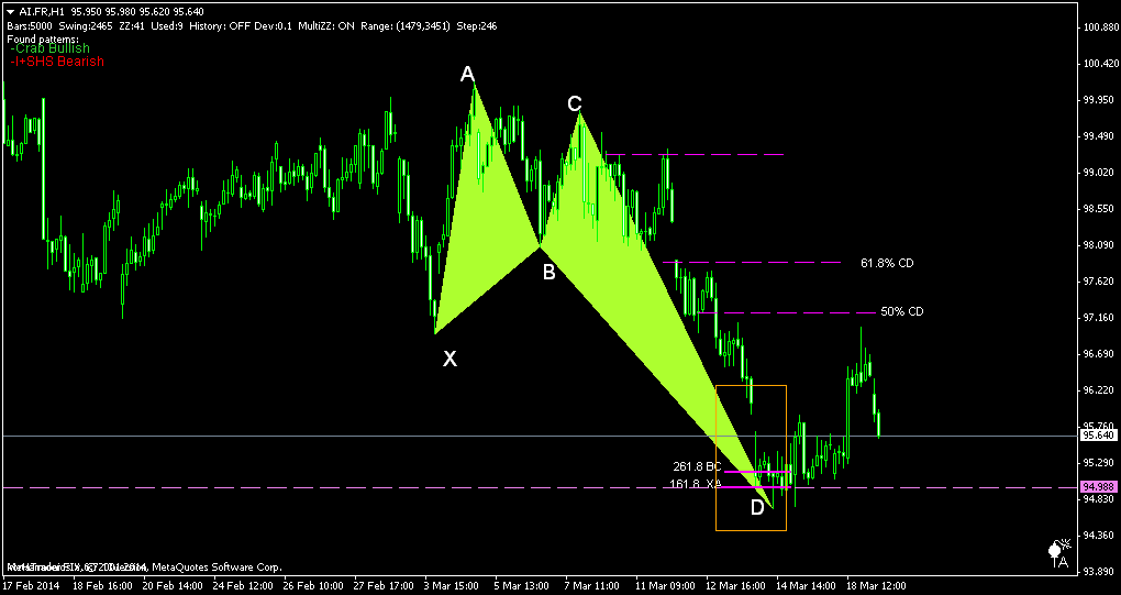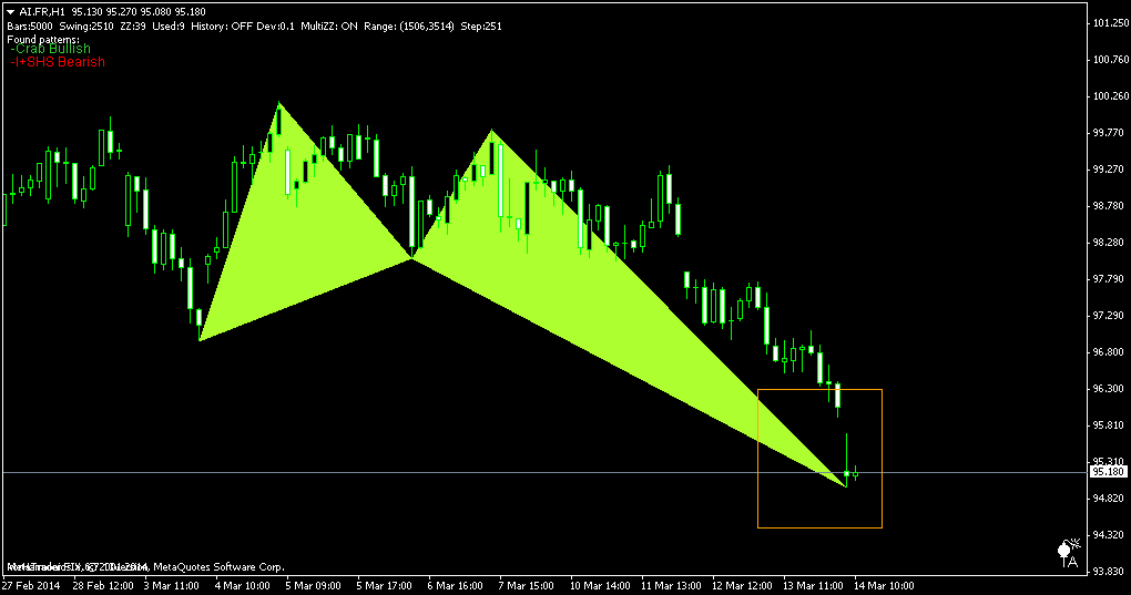 Detectado el patrón Cangrejo emergente, usted debió construir la PRZ, detectar niveles de precios de Fibonacci que convergen y aplicar técnicas de confirmación. Hecho el trabajo, esperar la reacción del precio en esa zona.