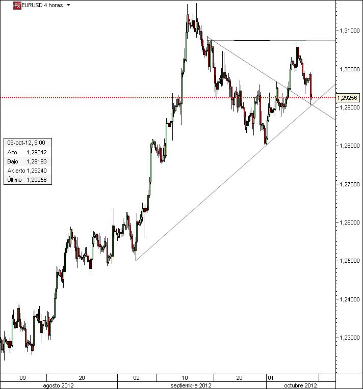 El tipo de cambio de nuestra divisa común cotiza a 1.2929 dólares y continúa consolidando la zona comprendida entre 1.3150 y 1.2800 dólares por euro.