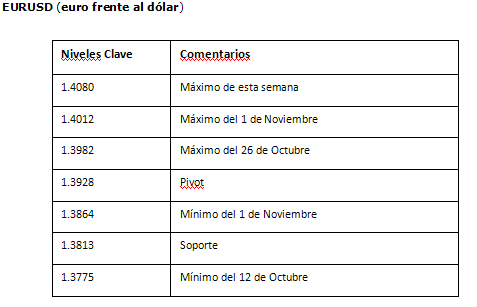 Durante la jornada de ayer lo más interesante fue que el estado del sector manufacturero superó notablemente las previsiones. Además, China mostró que en Octubre su producción manufacturera continúa avanzando. Además, el Banco Central de Australia ha subido los tipos de interés 25 puntos básicos inesperadamente debido a que un crecimiento de la economía podría causar que la inflación avance peligrosamente. El dólar australiano se ha visto impulsado en dirección a la paridad con el dólar americano.