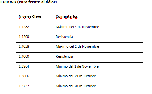 La semana ha comenzado con un euro débil frente al dólar y yen debido a nuevos miedos de que Irlanda pudiera seguir los pasos de Grecia y solicitar un rescate de la Unión Europea y Fondo Monetario Internacional. Los bonos de Irlanda estuvieron la semana pasada en caída libre a pesar de que el gobierno ha diseñado un plan de recorte en gasto y subida de impuestos. El spread entre los bonos irlandeses y alemanes hizo nuevos máximos históricos después de que los inversores crean que el plan de recorte es una medida que llega tarde y de forma desesperada.