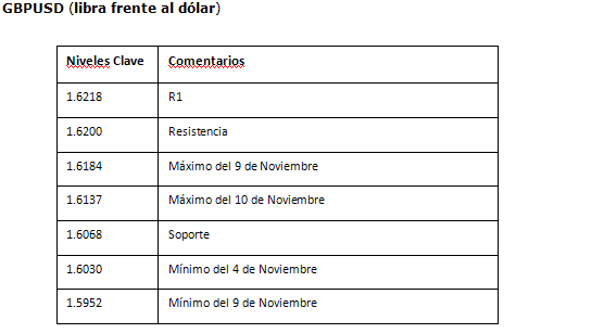 En el Reino Unido se publicará la inflación donde se espera que se mantenga la variación interanual en el 3,1% en Octubre. El objetivo del Banco de Inglaterra se sitúa en el 2-3% y todo lo que sea superar las previsiones podría alimentar las especulaciones de una pronta subida de tipos para moderar el IPC. Por otro lado, la economía británica está creciendo moderadamente, y si la inflación no comienza a remitir será muy difícil que el Banco de Inglaterra vuelva a realizar una comprar de activos.