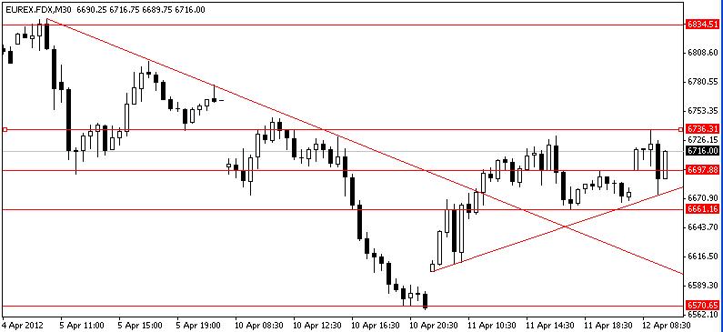 De momento y desde el día de ayer tenemos al DAX en una zona de laterales entre los 6660 y 6737 puntos aproximadamente, su zona media se encuentra en los 6700 puntos aproximadamente.