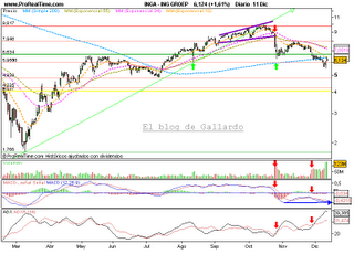En resumen, ING no ha alcanzado sus objetivos alcistas, ha perdido su primera zona de soporte y se ha dirigido con el acompañamiento de los indicadores de tendencia a su zona de soporte mayor y a la media de 200. A partir de ahí, habrá que ver si consigue volver a cotizar por encima de los mismos. Igualmente será interesante contemplar si los futuros sobre índices tienen un comportamiento semejante llegado el momento.