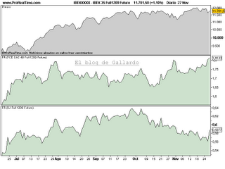Si se compara el futuro del Ibex 35 con los futuros de otros índices europeos cabe descubrir la mayor fuerza del primero en numerosos detalles.