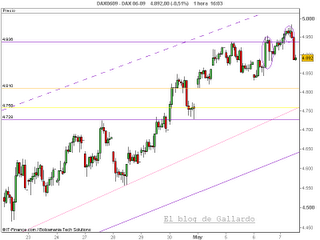 El Dax ha vuelto a los 4900, como preveía ayer, y a continuación ha caído hasta 4875, dando algunos puntos en el intradía.