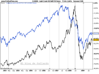 El petróleo presenta una correlación positiva con la renta variable. La explicación más sencilla sería que en las situaciones de crecimiento económico y en los momentos de bonanza en los mercados de acciones, se favorece una mayor demanda de petróleo y aumentan las expectativas de consumo; mientras que en los periodos de debilidad económica, recesión y caídas en los mercados, se contrae la demanda y cae el consumo.