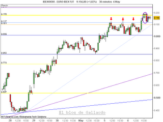 Ibex se ha ido a cerrar el hueco abierto en 9.178, pero una vez cerrado no se ha seguido subiendo hasta el siguiente nivel localizado sobre 9.260, sino que se ha producido un