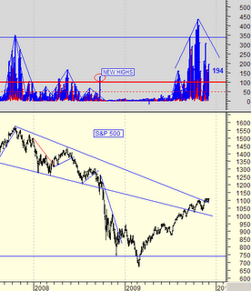 nuevos mínimos resultan un indicador útil de cara a analizar la fortaleza del mercado, otro tanto se puede decir acerca del número de valores que están haciendo nuevos máximos mientras el índice asciende.