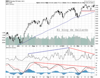 Macd, ha presentado una divergencia extensa y continua. En cambio, desde mediados de octubre, el indicador de nuevos máximos también luce una divergencia y denota cierta debilidad, al advertir de que ya no hay tantos valores acompañando y apoyando el movimiento.