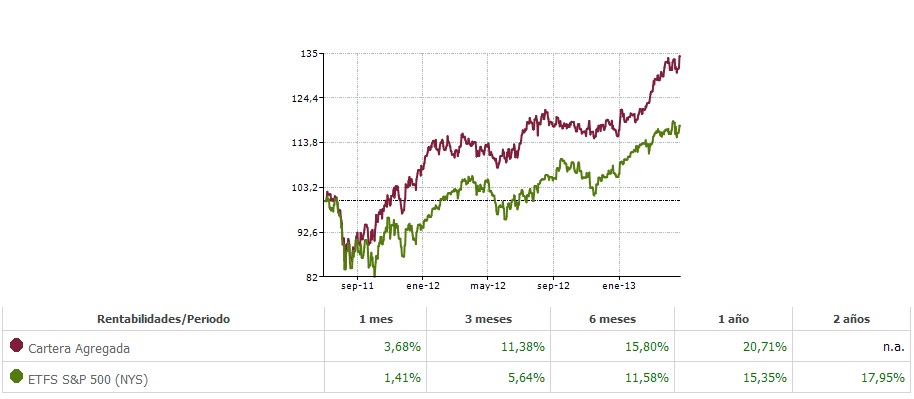 Primero de nada, la cartera lleva desde septiembre de 2010 en marcha. Al principio era una cartera con un mix de ETFs, acciones, bonos, etc, pero la verdad es que poco se puede aprender de llevar una cartera así, así que en julio de 2011 pensé en darle un giro y centrar la operativa en ETFs que me gustan más, eliminar ETFs de renta fija y tener un 50% empresas y un 50% ETFs, algo que se parece bastante a mi cartera actual.
