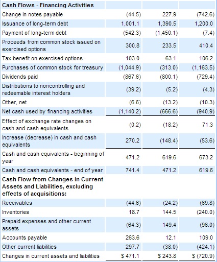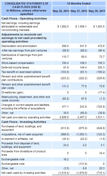 Hay solamente una cosa que no me termina de gustar y es que me gusta que las empresas siempre dispongan de dinero para la empresa para reinvertir, etc. GIS gana mucho dinero, pero pienso que tiene una política de recompra de acciones un poco agresiva. Eso, o bien también reparte demasiado en dividendos. Por ejemplo el último año entre dividendos y recompras de acciones se han ido 1900 mill, puedes ver como es una cantidad considerable respecto a lo que ha ingresado. Pero bueno, esto es una opinión sólamente.