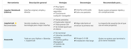 Gracias a JupyterLab o Anaconda, el entorno es visual y cómodo, sin necesidad de programar.