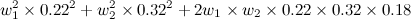 Ahora ya podemos deducir el riesgo de la cartera. Simplemente tenemos que sumar las varianzas (volatilidades al cuadrado) de cada empresa ponderadas por su peso al cuadrado, así como todas las dependencias cruzadas entre pares de empresa.