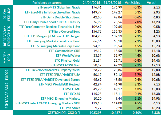 Posiciones en Gestión del Ciclo FI: así va el mes