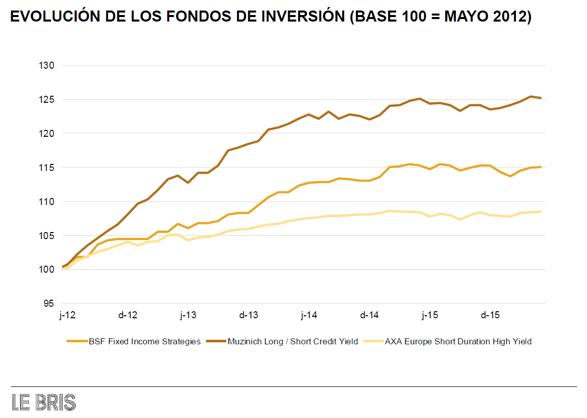 Debido al considerable aumento del riesgo de la cartera que supone invertir en estas alternativas, proponemos algunas opciones que pueden ser una buena alternativa o complemento a los tradicionales fondos de inversión de renta fija que son normalmente los elegidos para cubrir la parte conservadora de las carteras: short duration, deuda pública o corporativa.