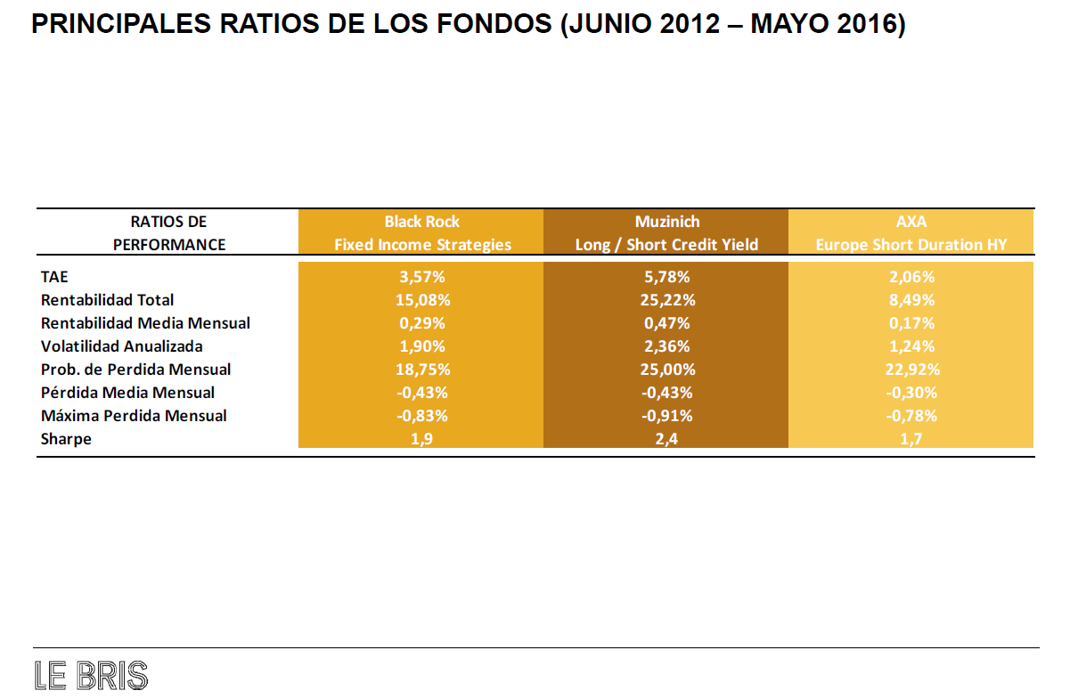 A continuación mostramos una serie de gráficos y ratios con la evolución de los fondos en el periodo junio de 2012 / mayo de 2016