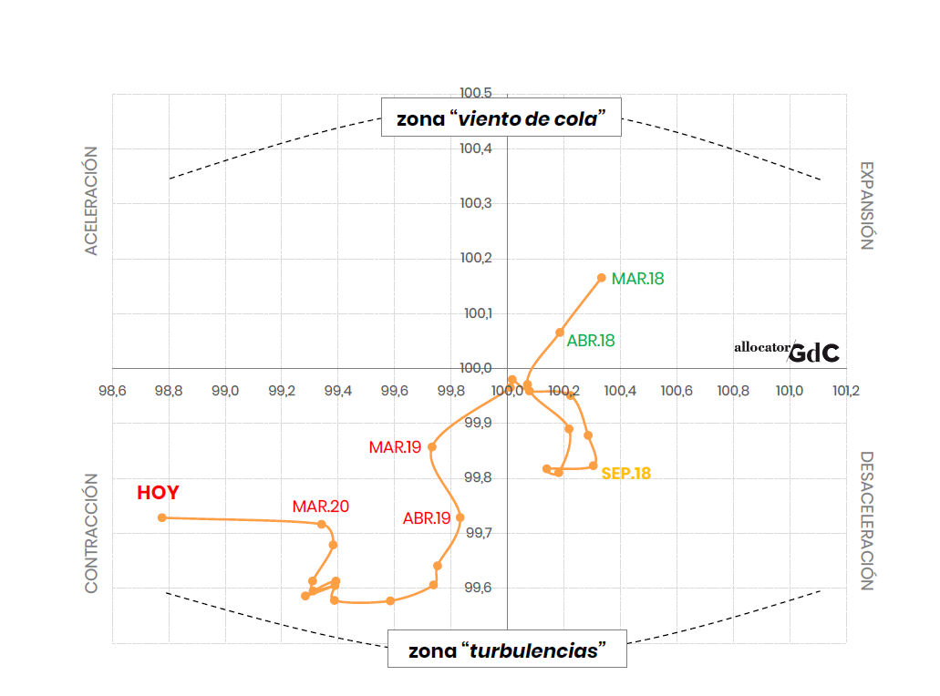 Esta es la foto reciente del indicador de expectativas del ciclo global. Llevamos algunos meses transitando por zona de “turbulencias”.