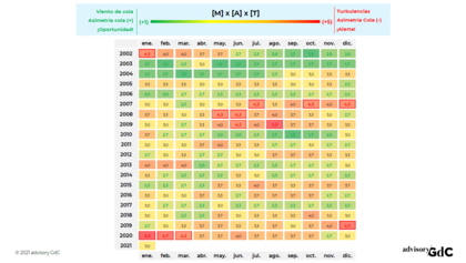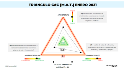 Porque (i) el multiplicador está con "viento de cola", pero (ii) la temperatura está demasiado alta y (iii) no detectamos asimetría favorable en movimientos extremos.