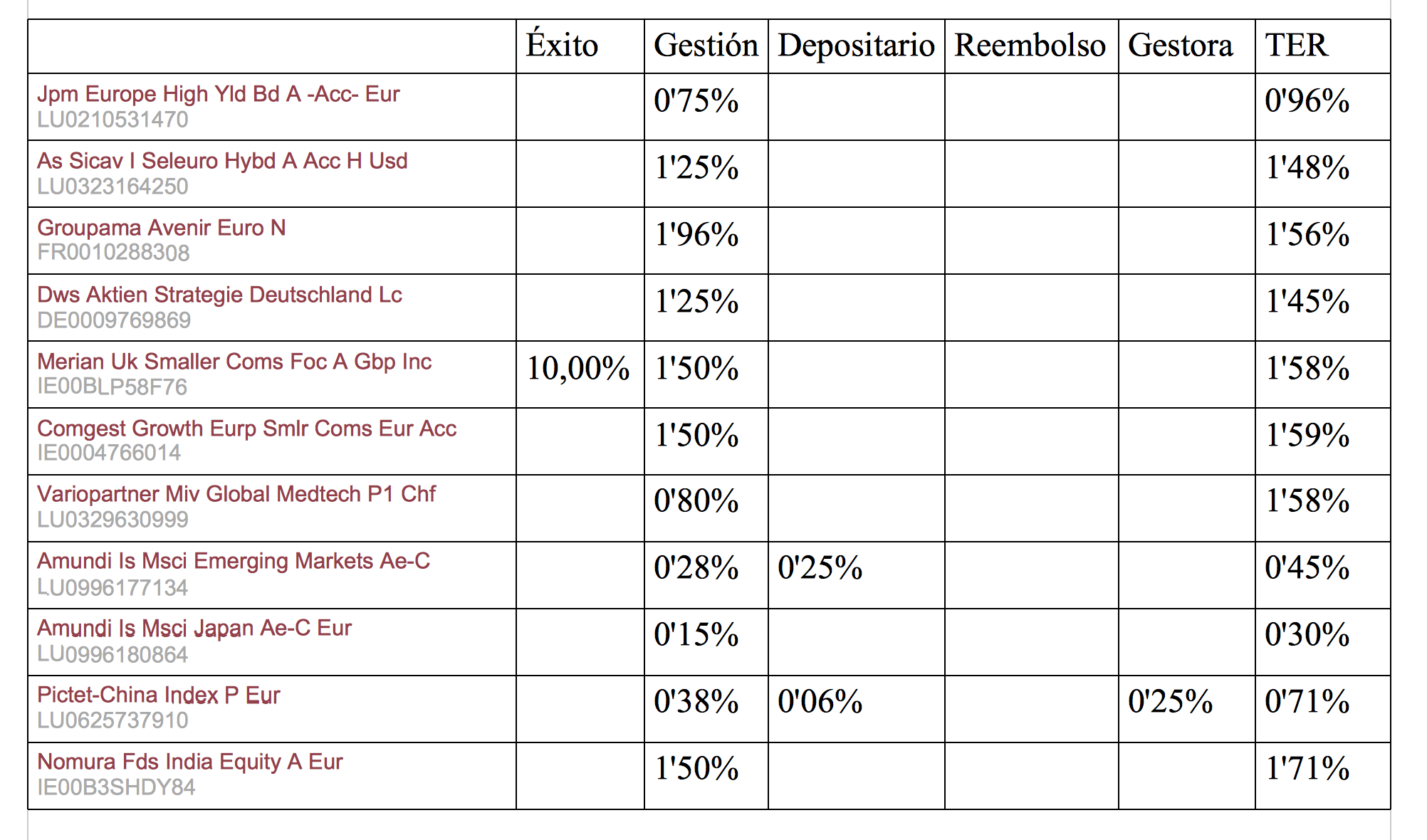 El post de hoy va a ser una lista de fondos de inversión, que por una u otra razón encuentro interesantes, y sus comisiones. Nada más.