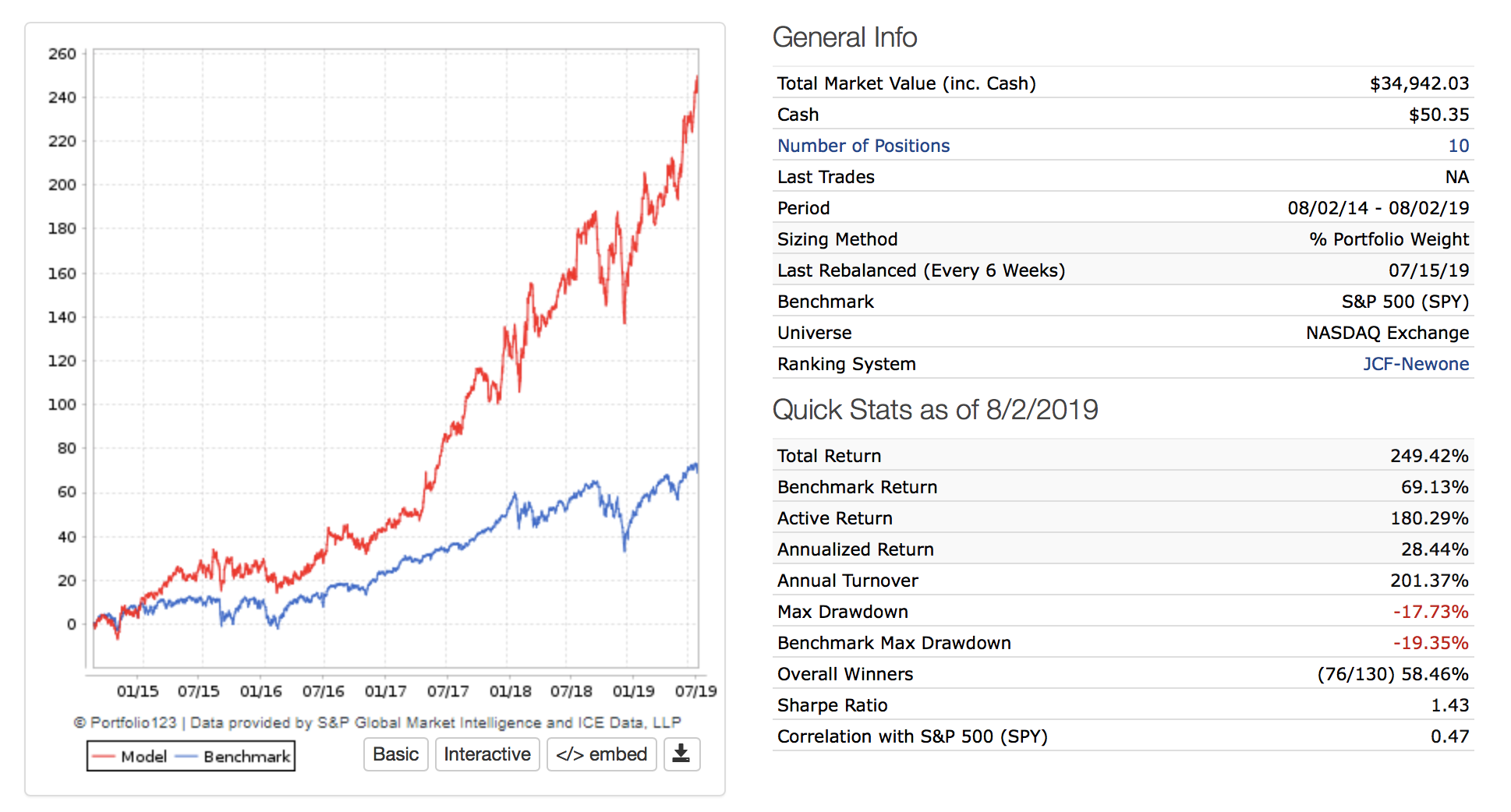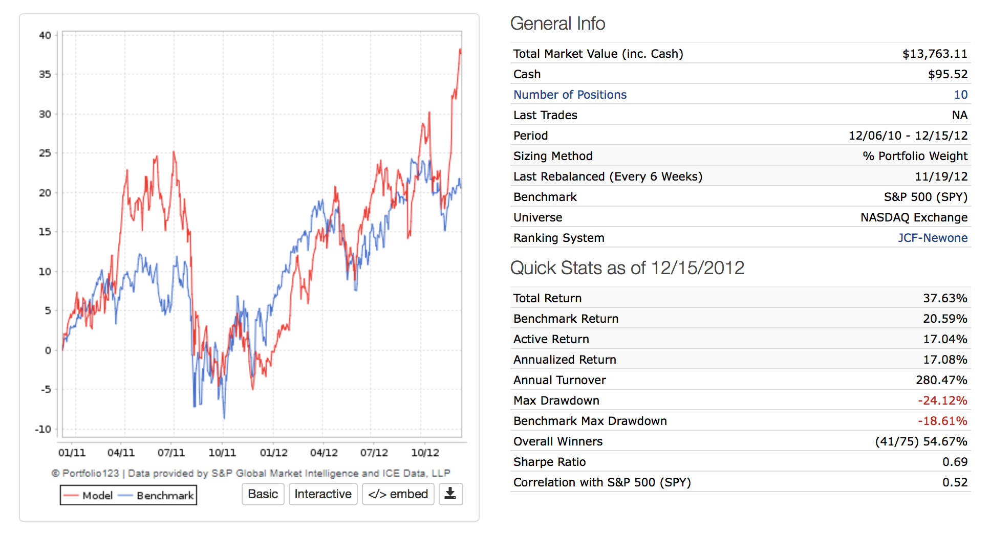 Crecimiento de los margenes, crecimiento del ROC, FCF, FCF to EV, Short Interest, Aceleración tanto de corto como de largo plazo en el Operating Income, Reducción de las acciones en circulación, ROI, Aceleración de las ventas en los últimos 12 meses, y condiciones de momentum de corto plazo (6 meses) en el precio, más una de largo plazo trabajando con dos EMA.