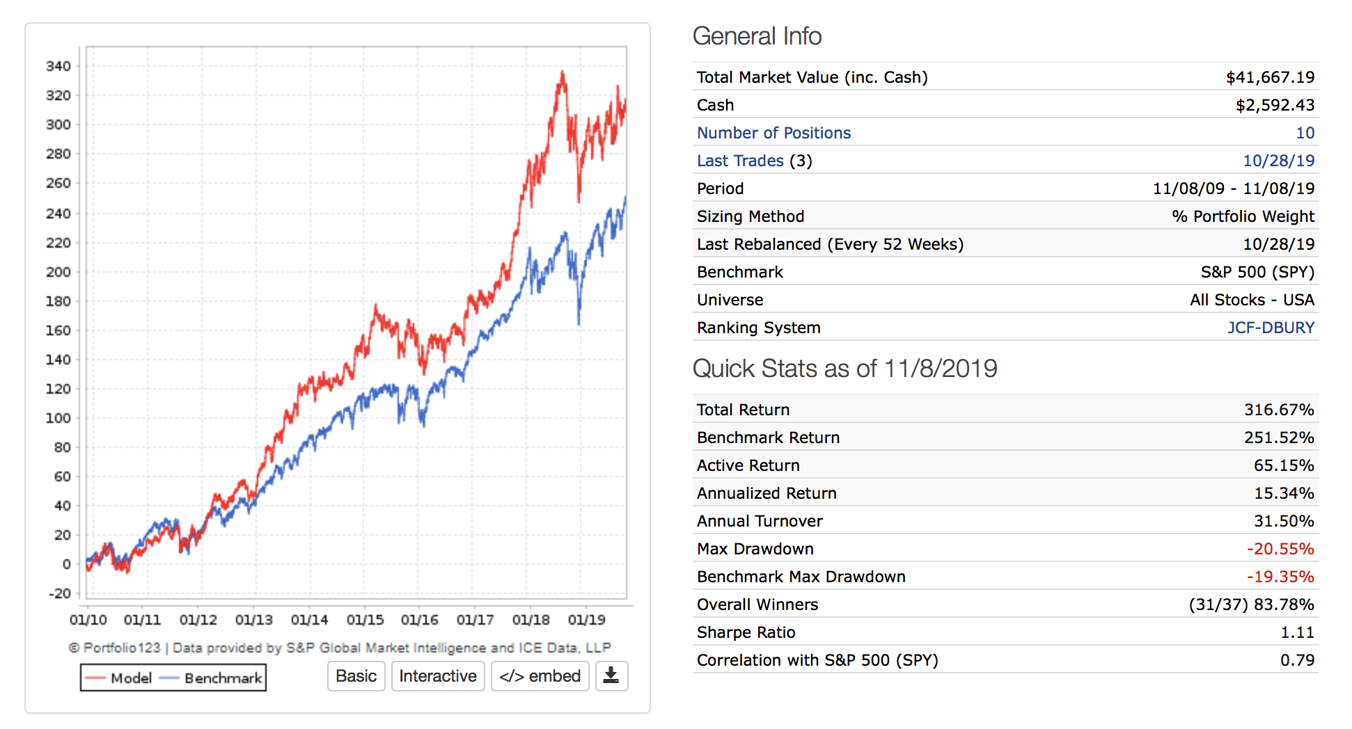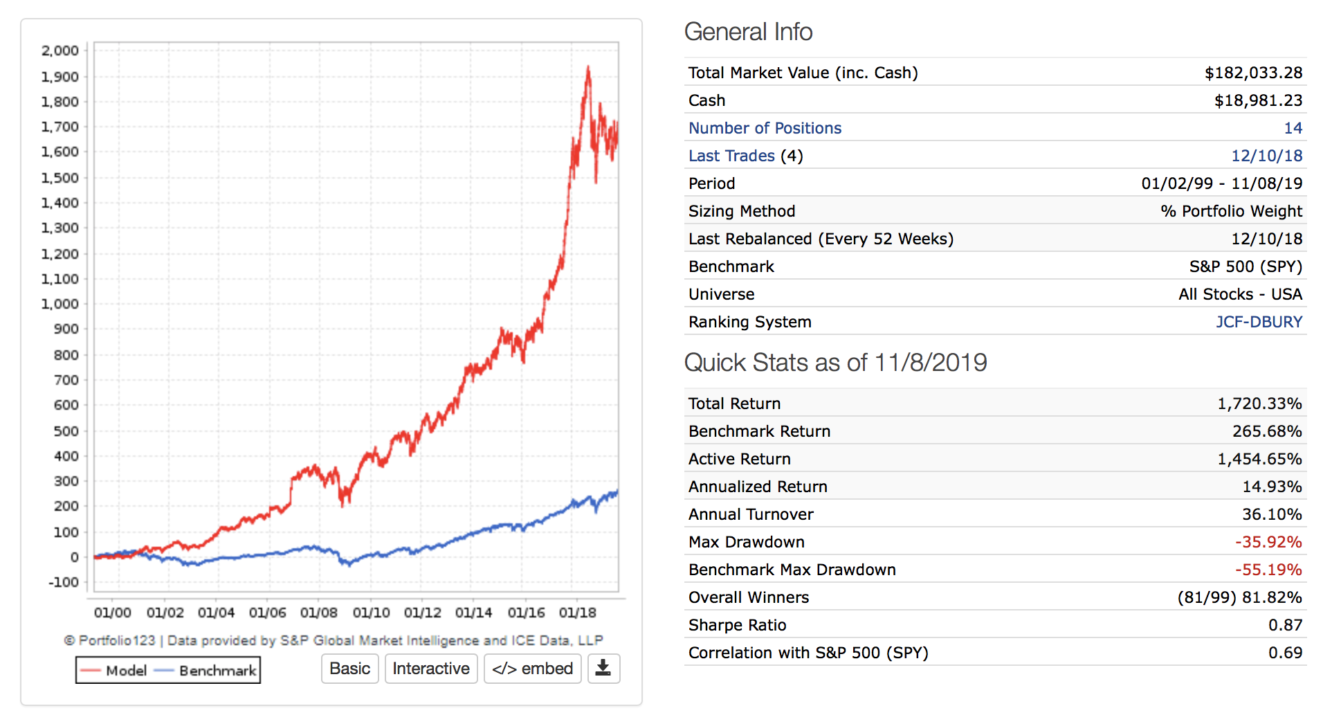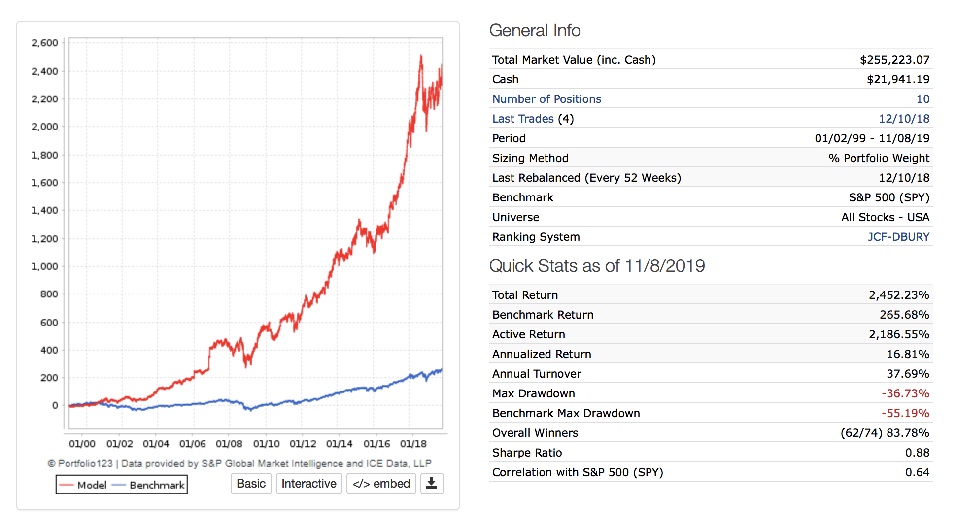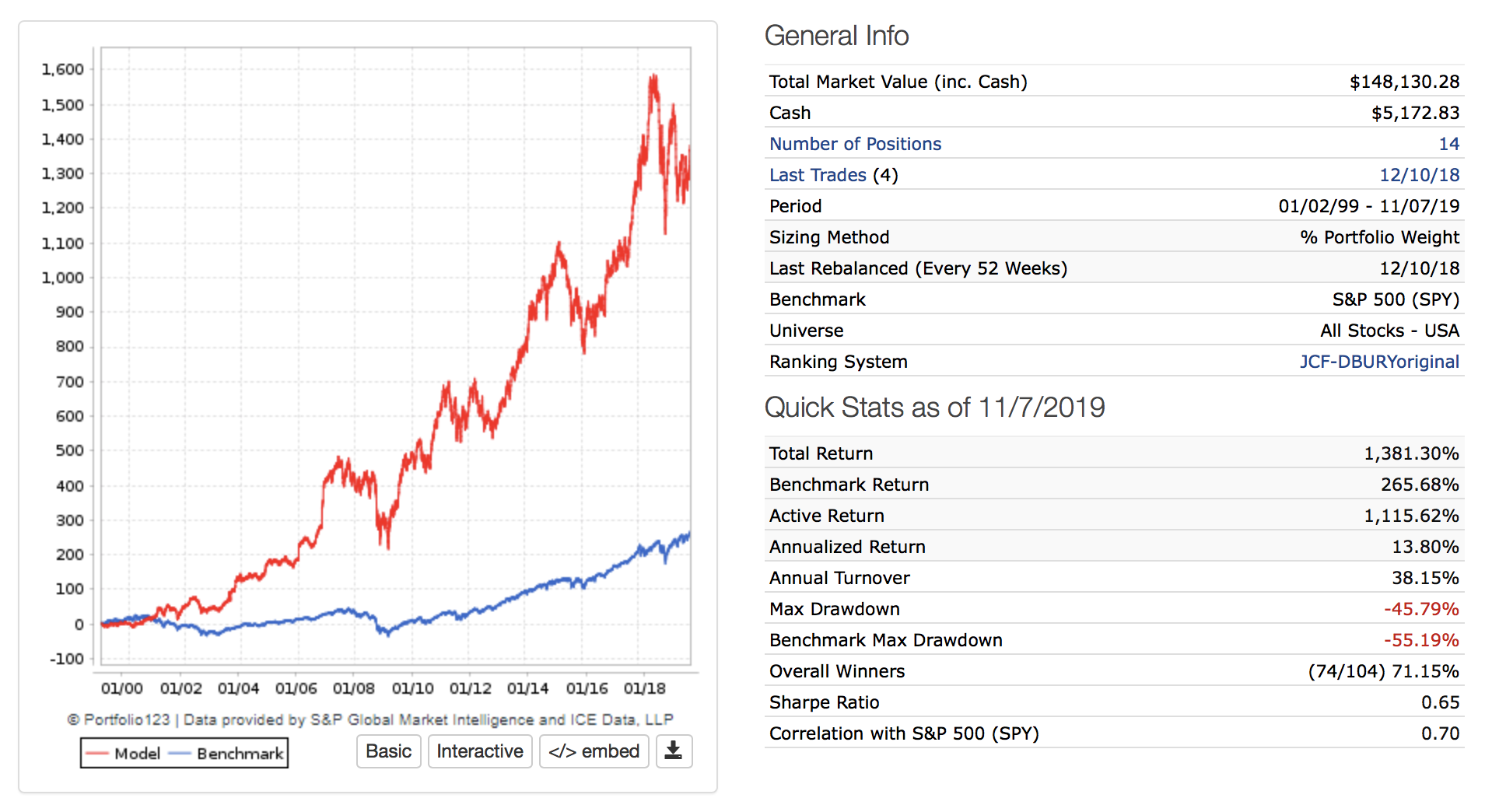 Aún así, la primera implementación del sistema, la “traducción” de mi resumen a lenguaje máquina, burda, rápida, literal, obviando puntos relevantes... fue una sorpresa: Batía al S&P500. Al primer backtest. Esto, que parece poca cosa, cuando llevas varios backtests a tus espaldas, como yo, te das cuenta que no es moco de pavo.