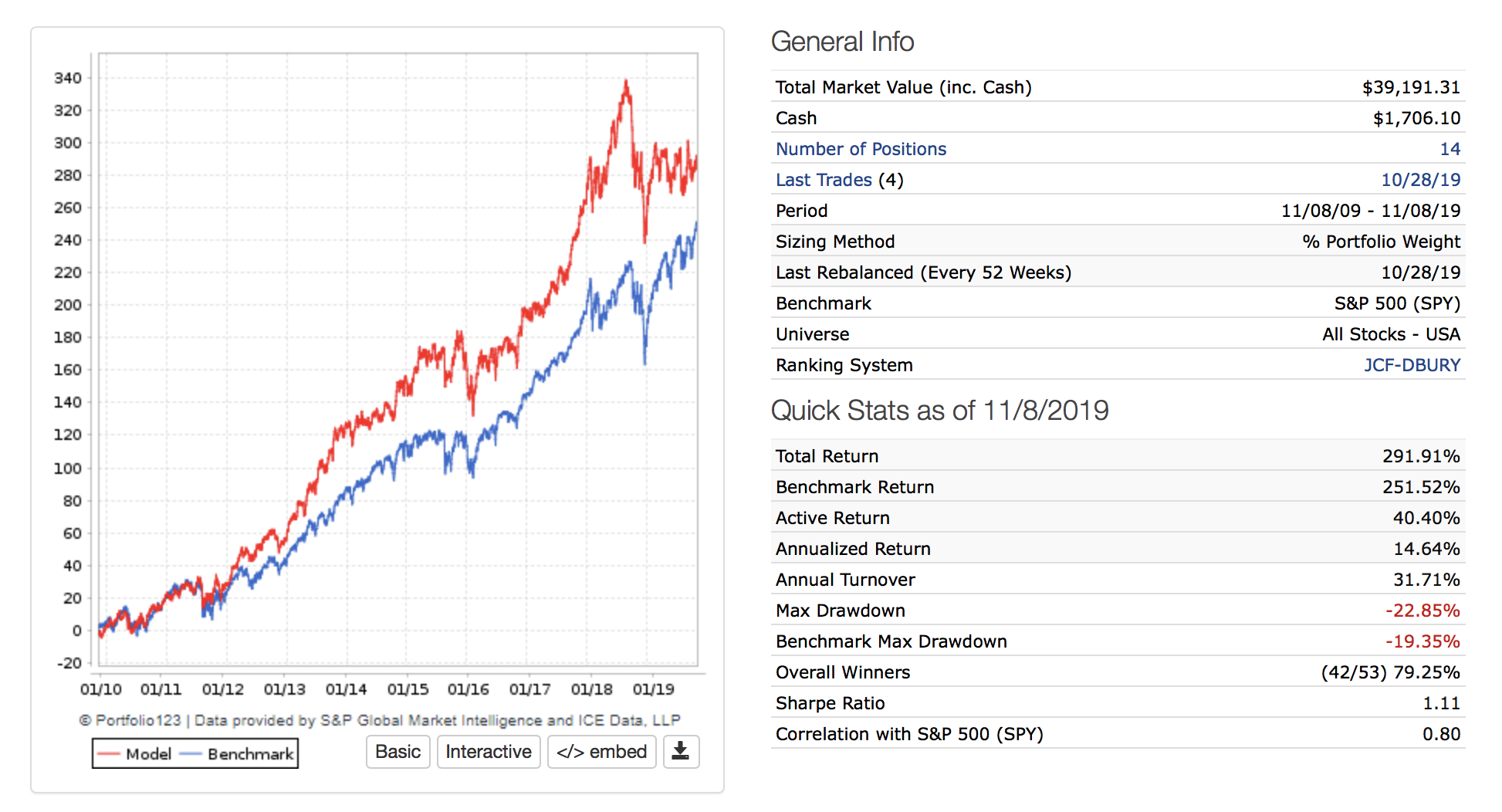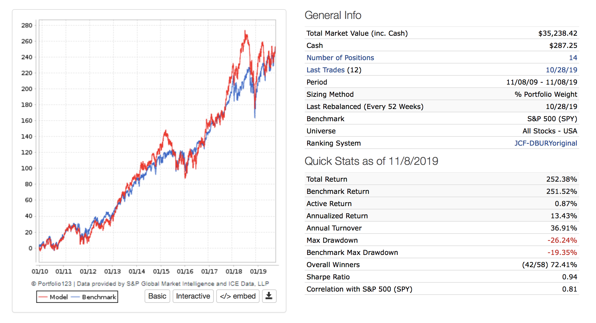 Resulta reconfortante observar que el sistema se adapta perfectamente a varios tamaños de cartera, dando los mejores resultados en carteras de 10 empresas, dónde estás concentran más “calidad” en base a los criterios de elección, como también en carteras de hasta 30 valores, dónde el sistema continua con un rendimiento sostenido por encima del 10% anualizado, y con un drawdown menor que el del índice de referencia.