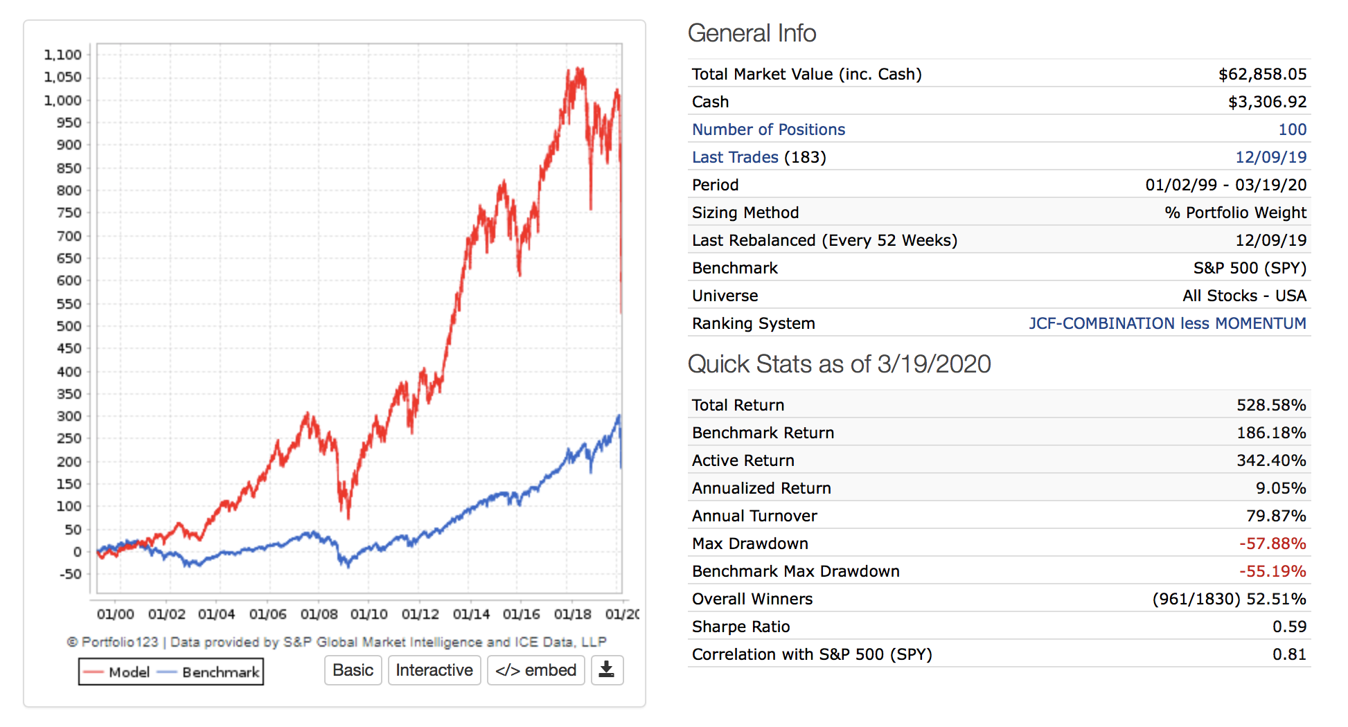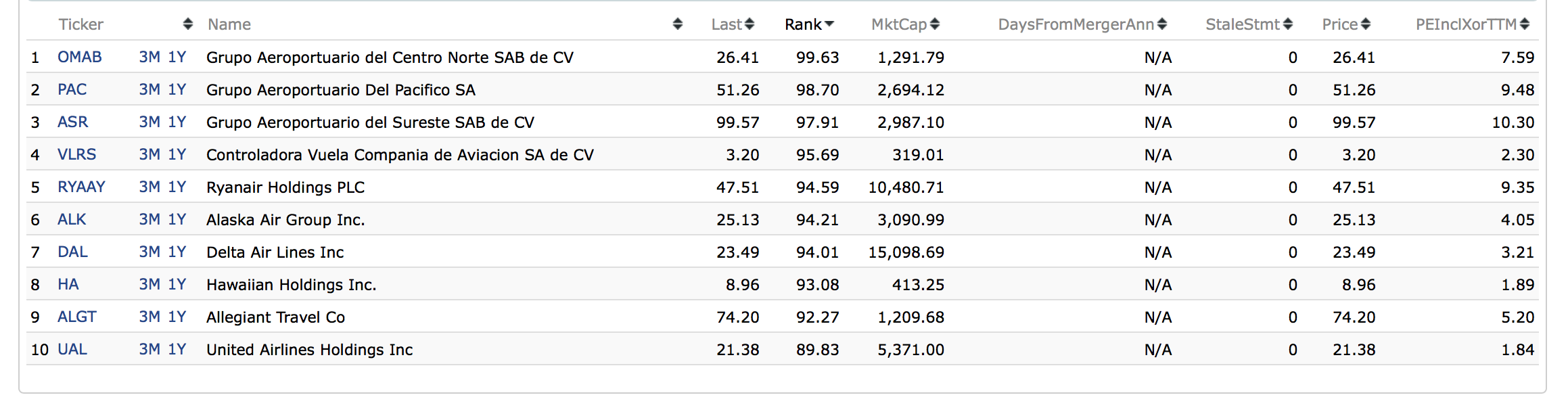 Pero a estas alturas de la película no estoy seguro de nada. Así que para mi ejercicio de hoy no utilizaré un ranking propio, sino uno creado por Mark Gerstein, director de Chaikin Analytics, Consejero en Portfolio 123 y autor del blog https://actiquant.com, y el resto del staff de Portfolio 123.