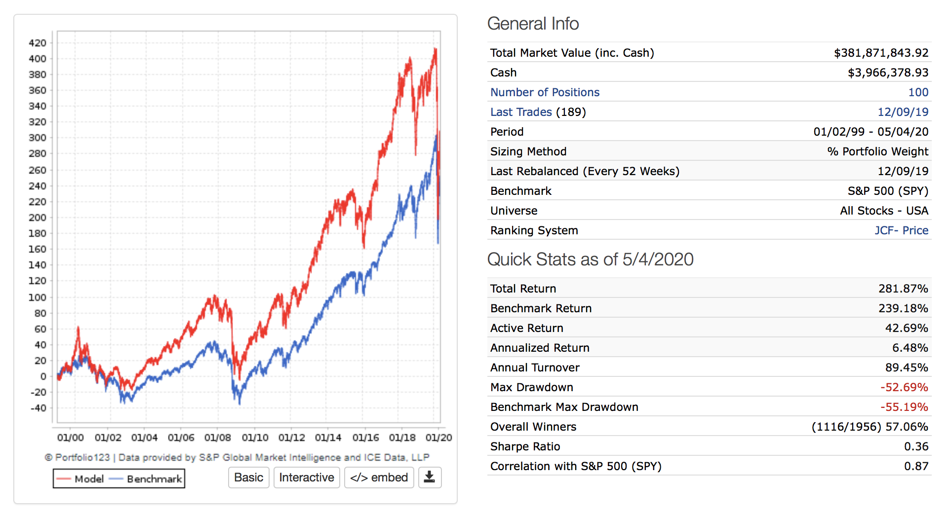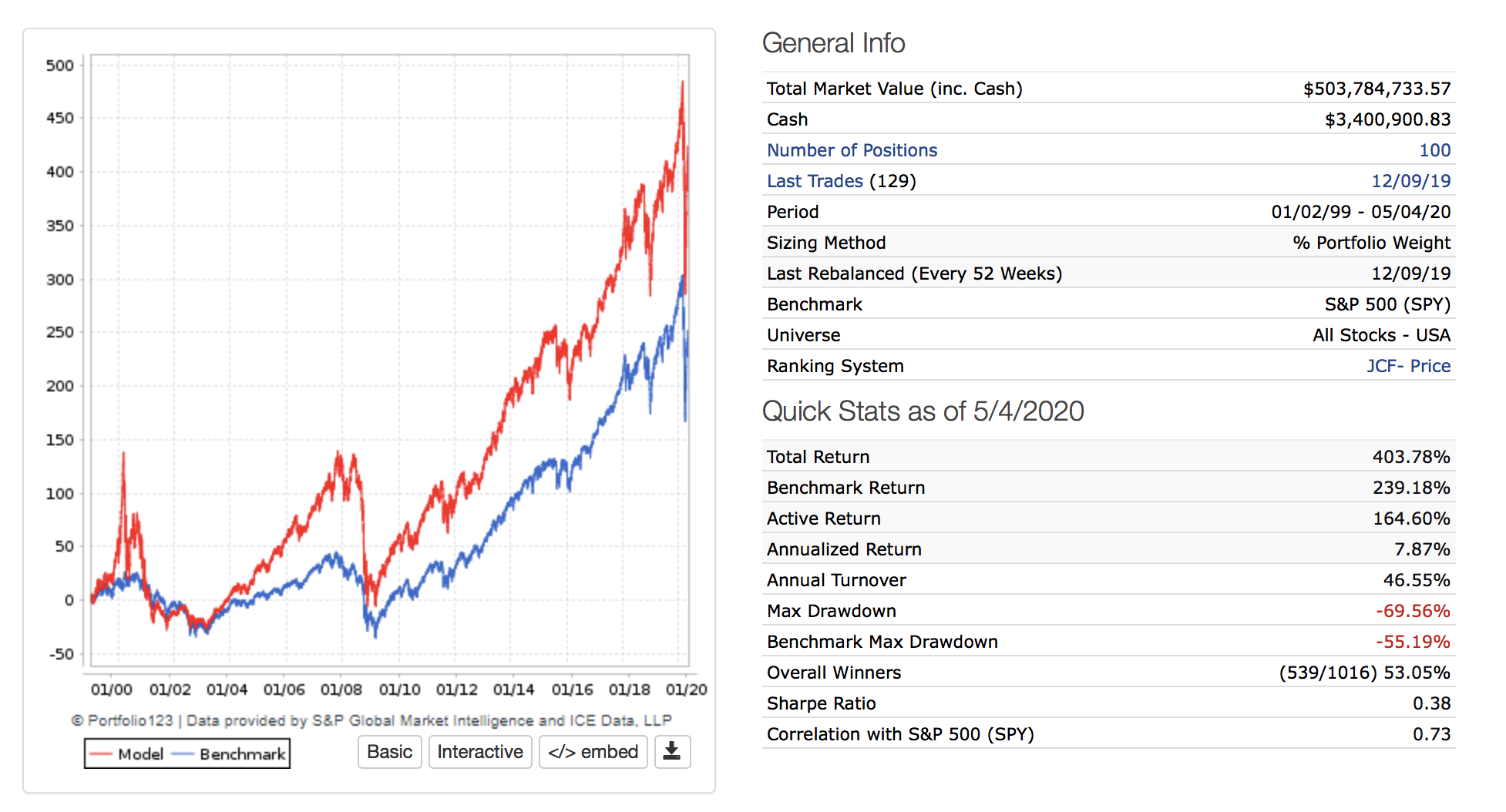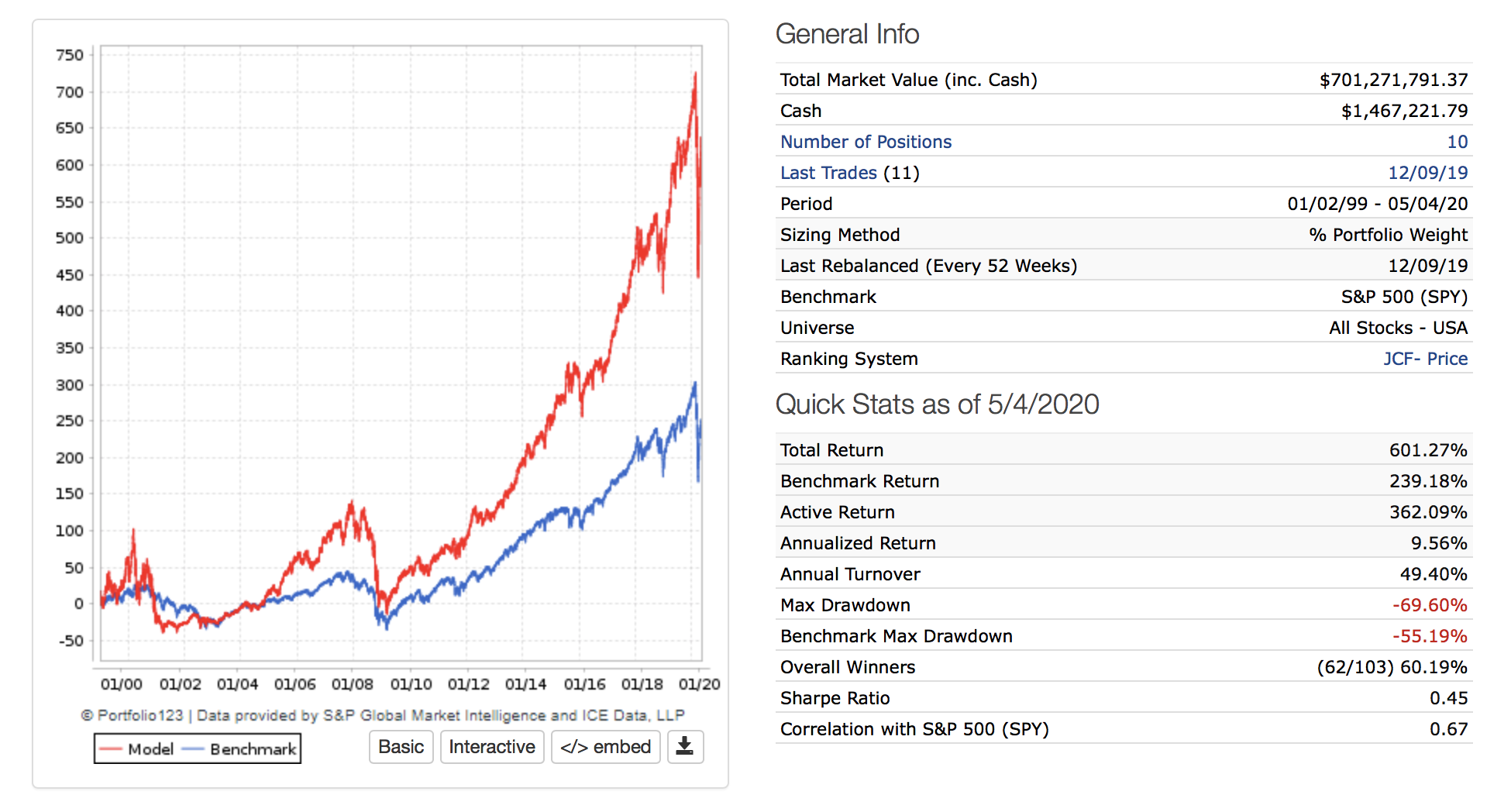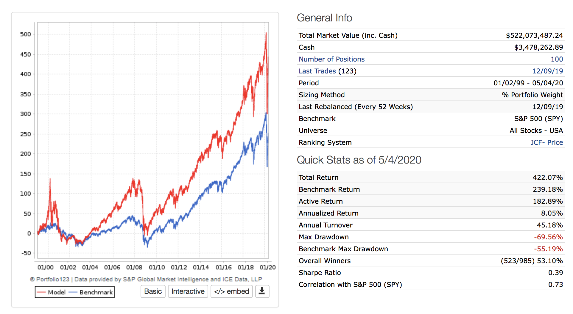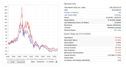 El precio como factor, actúa de forma similar al factor Momentum. De hecho son primos hermanos. Pero el sistema desarrollado en este artículo, si es que se le puede llamar así, comprar solo las empresas más caras, es bastante menos inteligente que un Momentum simple, que ya de por si es muy simplón.