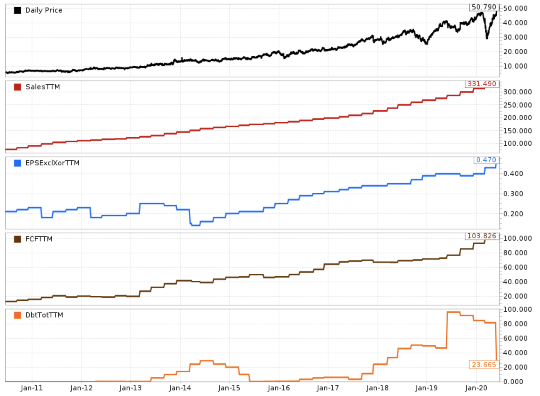 Cómo ejemplo ponía un gráfico de los fundamentales de una empresa, este: