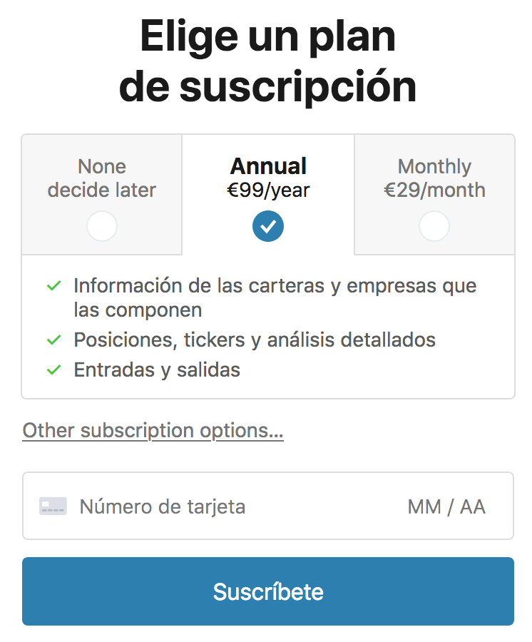 La anual, de 99 euros, cuando quieres ver todos los movimientos de todos los sistemas durante un año.